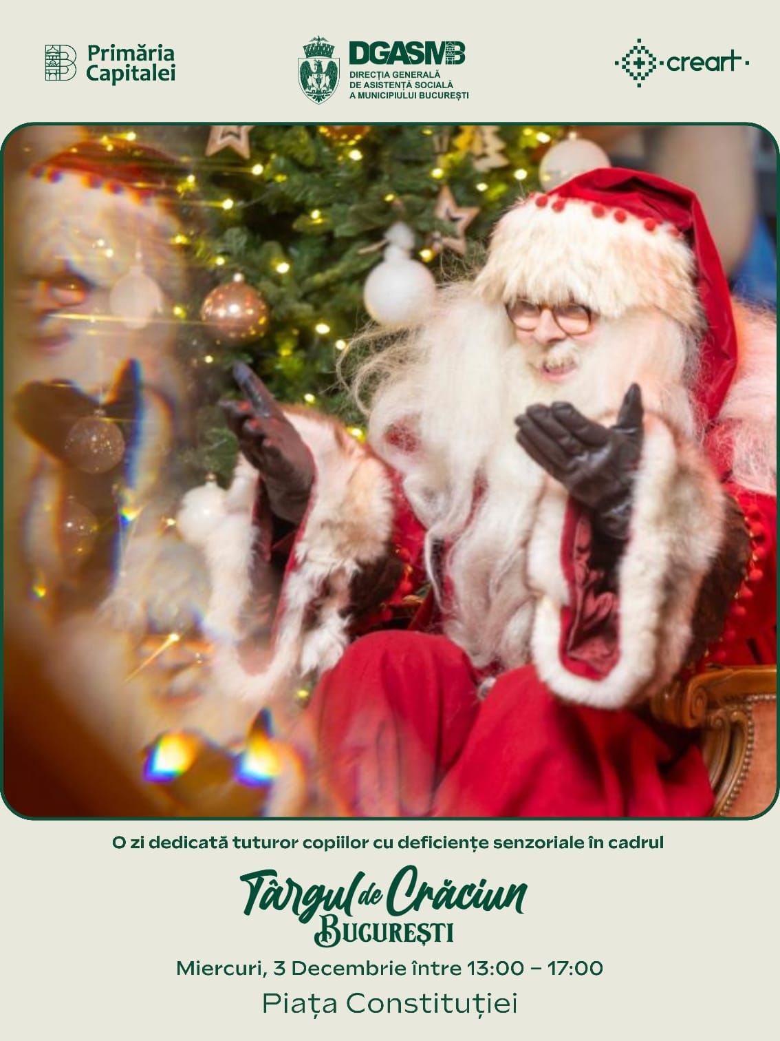 Miercuri, 𝟑 𝐝𝐞𝐜𝐞𝐦𝐛𝐫𝐢𝐞 𝟐𝟎𝟐𝟓, în intervalul orar 13:00 – 17:00, în cadrul Târgului de Crăciun București din Piața Constituției, va avea loc evenimentul 𝐒𝐈𝐋𝐄𝐍𝐓 𝐃𝐀𝐘 – dedicat copiilor cu nevoi speciale. Între orele 13:00 și 17:00, Târgul de Crăciun București va fi adaptat pentru micuții cu dizabilități senzoriale, întrucât știm cât de greu poate fi […]