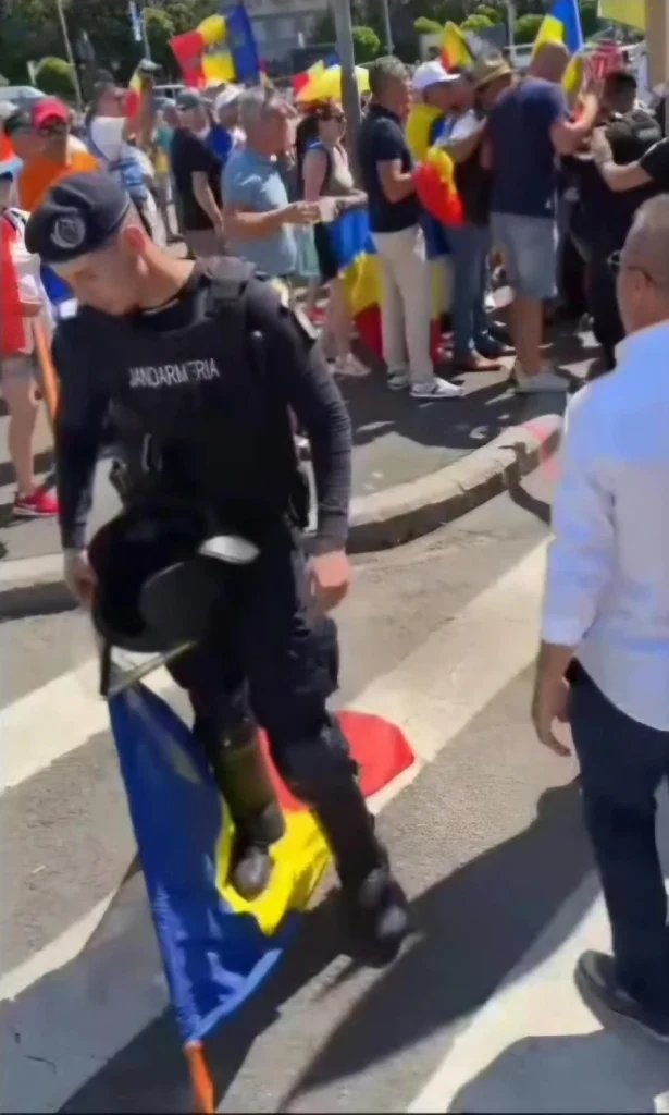 Drapelul României este pentru mine o icoană! Imaginea tânărului jandarm călcând în picioare Tricolorul, punându-și bocancii pe aurul drapelului, pentru care atâția români s-au jertfit de-a lungul secolelor, este imaginea timpurilor detestabile pe care am ajuns să le trăim. Și asta în timp ce Stegarul Dac zace în pușcărie și toate apelurile pentru eliberarea sa se izbesc de zidul indiferenței guvernanților.