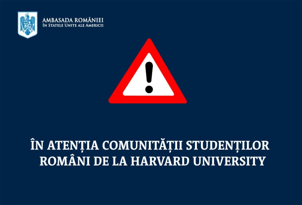 „Ambasada României la Washington urmărește îndeaproape evoluțiile generate de decizia Administrației SUA de ieri de a revoca certificarea programului Harvard pentru studenți internaționali și schimburi academice (SEVP), detaliile de implementare, respectiv consecințele acesteia asupra comunității de studenți români, se arată într-o postare pe pagina de Facebook a instituției diplomatice.
