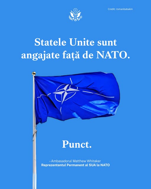Mesaj al ambasadorului SUA la NATO, Matthew Whitaker, pe pagina Ambasadei SUA la Bucuresti: Statele Unite vor continua să fie un partener credibil și responsabil în cadrul Alianței