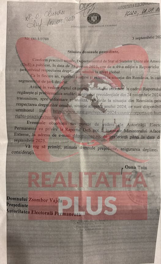 „Dar va amintiti cand Muraru de la Washington a contrazis o in mod repetat pe Toiu ca nu avem nicio problema cu anularea? Ia uitati mai jos adresa pe care Toiu o trimite la AEP pentru a primi raspunsuri legat de anularea alegerilor. Termen de raspuns: 30 septembrie! Oare pe cine intereseaza?”