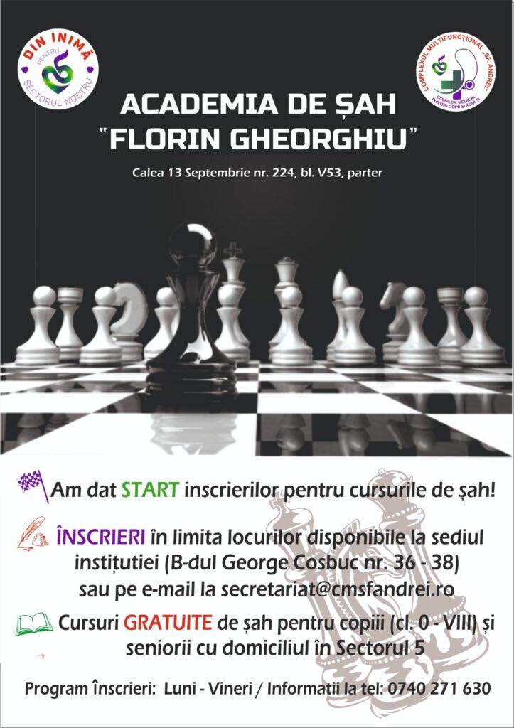 Complexul Multifuncțional „Sfântul Andrei” a început înscrierile pentru proiectul ”Academia de șah Florin Gheorghiu”, proiect al cărui principal obiectiv este învățarea și aprofundarea acestui sport pentru copiii care studiază în instituțiile de învățământ de pe raza Sectorului 5, cât și pentru tinerii și adulții care locuiesc în sector. Proiectul „Academia de șah Florin Gheorghiu” se […]