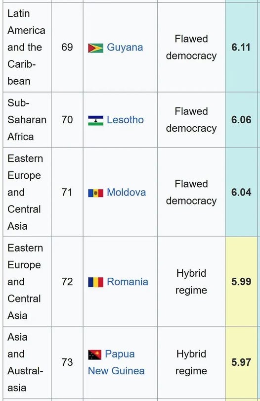 „Suntem sub R. Moldova și aproape la egalitate cu Papua Noua Guinee ca nivel de democrație: Regim hibrid! Guyana e peste noi, dar și statul african Lesotho”, scrie, pe Facebook, avocata Ingrid Mocanu.