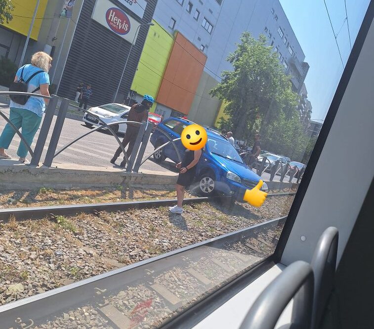 Circulația tramvaielor pe linia 41, blocată pe strada Brașov din cauza unui accident rutier