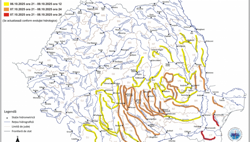 Institutul Național de Hidrologie și Gospodărire a Apelor a emis o avertizare cod roșu pentru râurile mici din Dobrogea, unde se așteaptă ploi torențiale de peste 100–200 l/mp în următoarele 24 de ore. Specialiștii avertizează asupra viiturilor rapide și a posibilelor efecte locale semnificative. Apele Române au anunțat că 500 de angajați și 100 de utilaje sunt […]