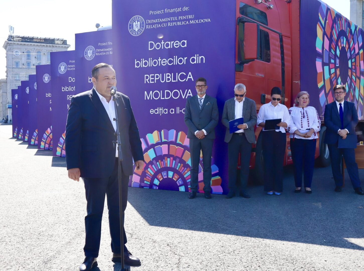”𝐴𝑚 𝑟𝑒𝑢𝑠̦𝑖𝑡 𝑠𝑎̆ 𝑐𝑜𝑛𝑡𝑖𝑛𝑢𝑎̆𝑚 𝑝𝑟𝑜𝑖𝑒𝑐𝑡𝑢𝑙 𝑙𝑎𝑛𝑠𝑎𝑡 𝑖̂𝑛 𝑎𝑛𝑢𝑙 2024 𝑎𝑡𝑢𝑛𝑐𝑖 𝑐𝑎̂𝑛𝑑 𝑎𝑢 𝑓𝑜𝑠𝑡 𝑑𝑜𝑛𝑎𝑡𝑒 100.000 𝑑𝑒 𝑣𝑜𝑙𝑢𝑚𝑒 𝑝𝑒𝑛𝑡𝑟𝑢 𝑝𝑒𝑠𝑡𝑒 300 𝑑𝑒 𝑏𝑖𝑏𝑙𝑖𝑜𝑡𝑒𝑐𝑖 𝑝𝑢𝑏𝑙𝑖𝑐𝑒. 𝐴𝑐𝑒𝑠𝑡 𝑑𝑒𝑚𝑒𝑟𝑠 𝑎 𝑐𝑜𝑛𝑑𝑢𝑠 𝑙𝑎 𝑖̂𝑛𝑡𝑖𝑛𝑒𝑟𝑖𝑟𝑒𝑎 𝑓𝑜𝑛𝑑𝑢𝑙𝑢𝑖 𝑑𝑒 𝑐𝑎𝑟𝑡𝑒 𝑖̂𝑛 𝑙𝑖𝑚𝑏𝑎 𝑟𝑜𝑚𝑎̂𝑛𝑎̆ 𝑖̂𝑛 𝑅𝑒𝑝𝑢𝑏𝑙𝑖𝑐𝑎 𝑀𝑜𝑙𝑑𝑜𝑣𝑎 𝑐𝑢 20 𝑑𝑒 𝑎𝑛𝑖! 𝐼̂𝑛 𝑎𝑐𝑒𝑠𝑡 𝑎𝑛 80.000 𝑑𝑒 𝑣𝑜𝑙𝑢𝑚𝑒 𝑣𝑜𝑟 𝑎𝑗𝑢𝑛𝑔𝑒 𝑝𝑒 𝑟𝑎𝑓𝑡𝑢𝑟𝑖𝑙𝑒 𝑏𝑖𝑏𝑙𝑖𝑜𝑡𝑒𝑐𝑖𝑙𝑜𝑟 𝑑𝑖𝑛 𝑖̂𝑛𝑡𝑟𝑒𝑎𝑔𝑎 𝑅𝑒𝑝𝑢𝑏𝑙𝑖𝑐𝑎 𝑀𝑜𝑙𝑑𝑜𝑣𝑎, 𝑎𝑐𝑜𝑙𝑜 𝑢𝑛𝑑𝑒 𝑎 𝑓𝑜𝑠𝑡 𝑠𝑜𝑙𝑖𝑐𝑖𝑡𝑎𝑡 𝑠𝑝𝑟𝑖𝑗𝑖𝑛𝑢𝑙 𝐺𝑢𝑣𝑒𝑟𝑛𝑢𝑙𝑢𝑖 𝑅𝑜𝑚𝑎̂𝑛𝑖𝑒𝑖. a declarat Constantin-Valentin Răducanu în cadrul ceremoniei oficiale de de donare a celor 400 de pachete cu cărți.