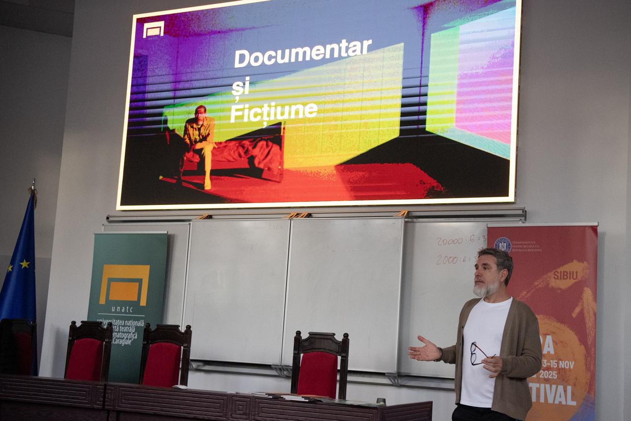 ”Masterclass Astra Film Chișinău. Astăzi, la Universitatea de Stat din Moldova, tinerii pasionați de cinema au participat la un masterclass despre filmul documentar – de la scenariu la film, susținut de drd. Alexandru Borundel (UNATC).