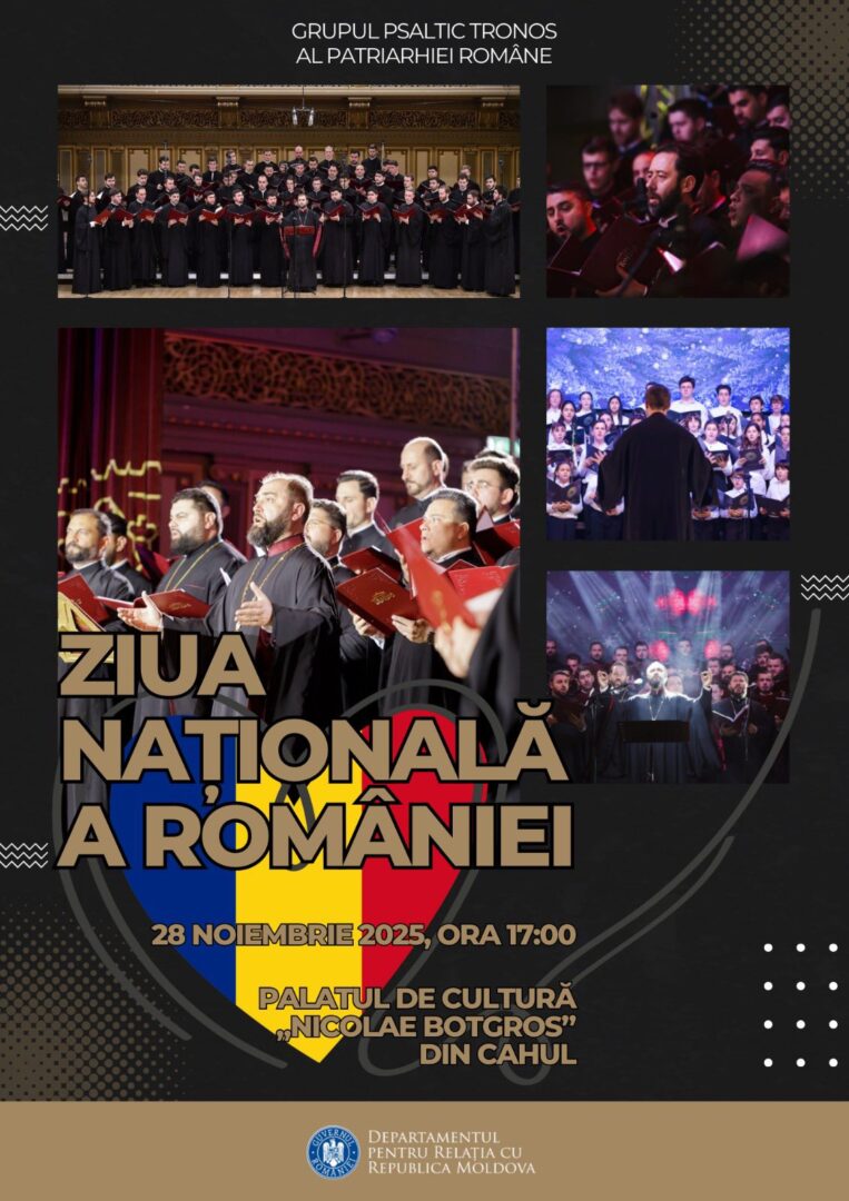 Departamentul pentru Relația cu Republica Moldova (DRRM), din cadrul Guvernului României, celebrează Ziua Națională a României peste Prut prin organizarea a două concerte-eveniment de muzică bizantină în limba română, cu intrare liberă.