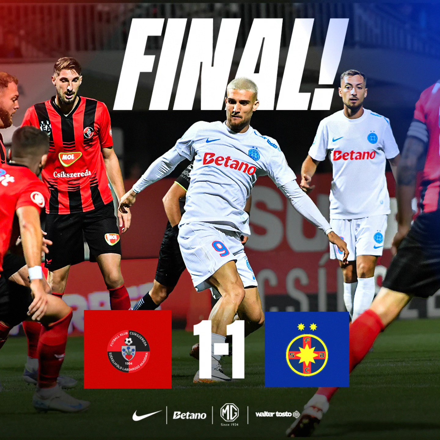 FCSB, ţinută în şah de FK Csikszereda la Miercurea Ciuc (1-1), în Superligă