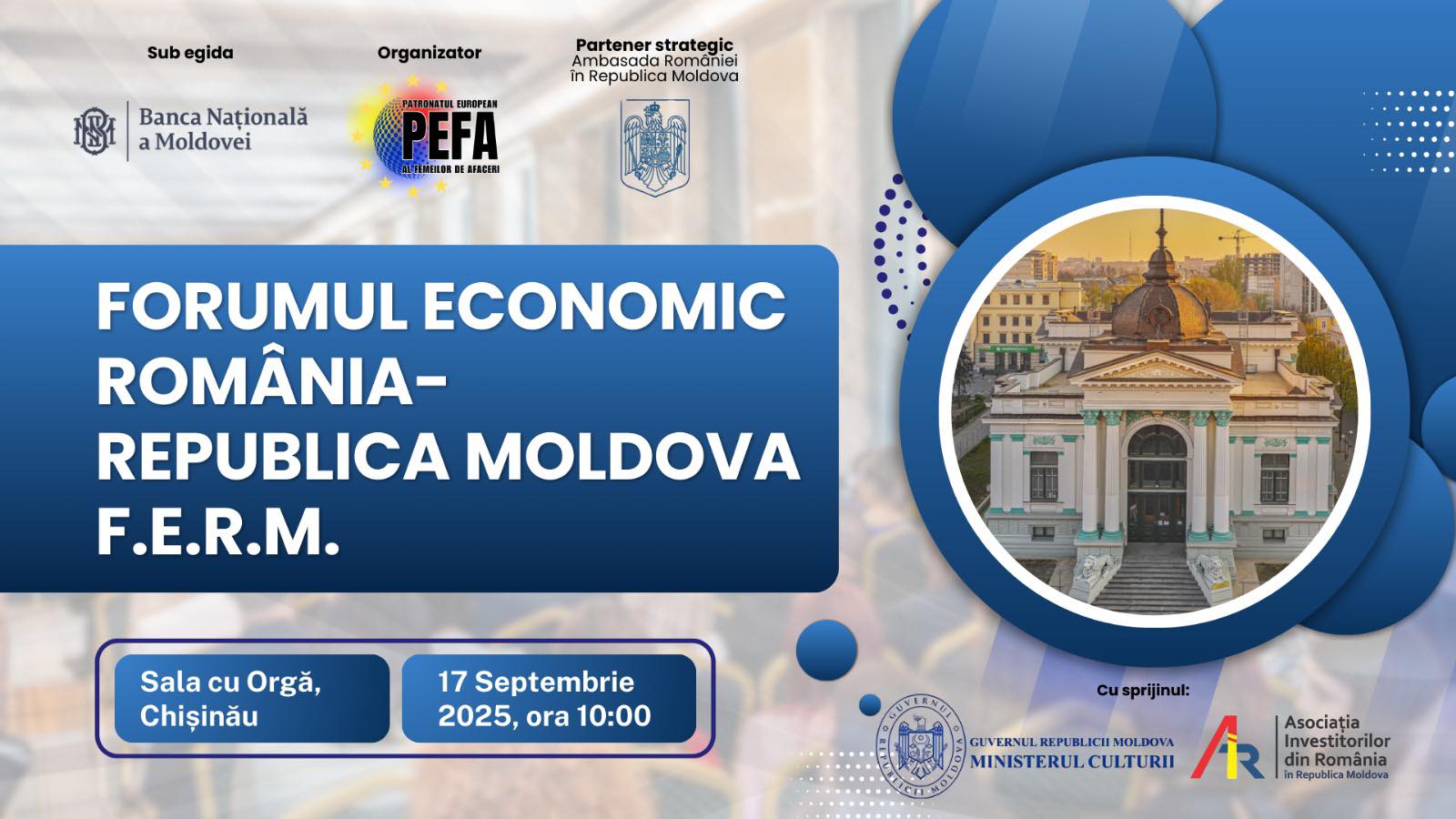 Patronatul European al Femeilor de Afaceri PEFA organizează, în data de 17 septembrie, la Chișinău, Forumul Economic România – Republica Moldova F.E.R.M. Evenimentul se desfășoară sub egida Băncii Naționale a Moldovei, în parteneriat strategic cu Ambasada României în Republica Moldova, cu susținerea Ministerului Culturii din Republica Moldova și având ca partener Asociația Investitorilor din România […]