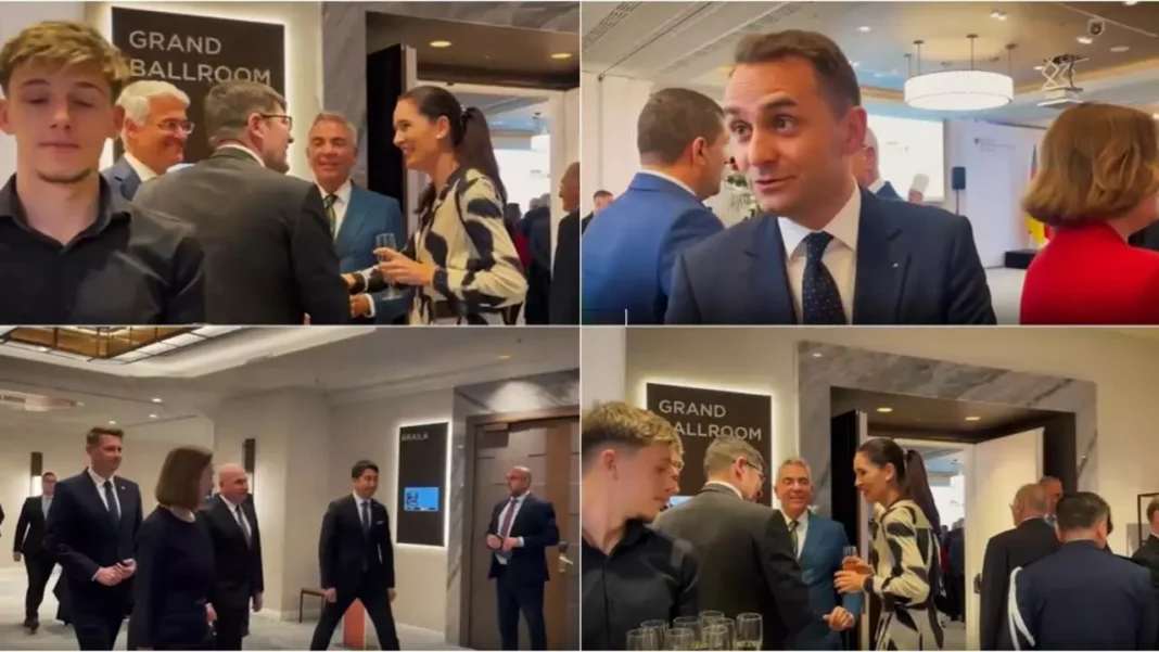 Fostul vicepremier șpăgar era extrem de zâmbitor și relaxat, cu un pahar de șampanie în mână, în prezența ministrului Investițiilor și Proiectelor Europene din România, Dragoș Pîslaru, și a fostului primar al Sectorului 1, Clotilde Armand.