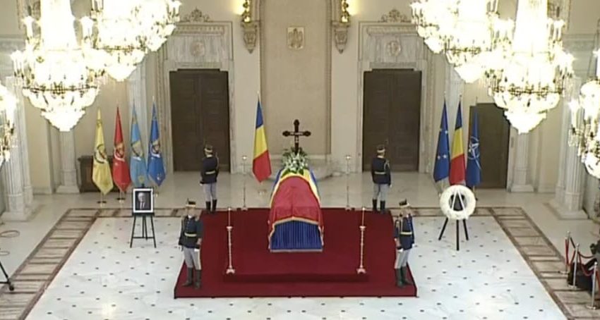„Am văzut, așadar, cum a fost așezat sicriul cu trupul neînsuflețit al președintelui Nicușor Dan pe catafalc. Începe acum momentul în care oficialii și foști șefi de stat ajung la Palatul Cotroceni să-și prezinte condoleanțele. Din minut în minut, îl așteptăm pe Emil Constantinescu”, a spus prezentatoarea.