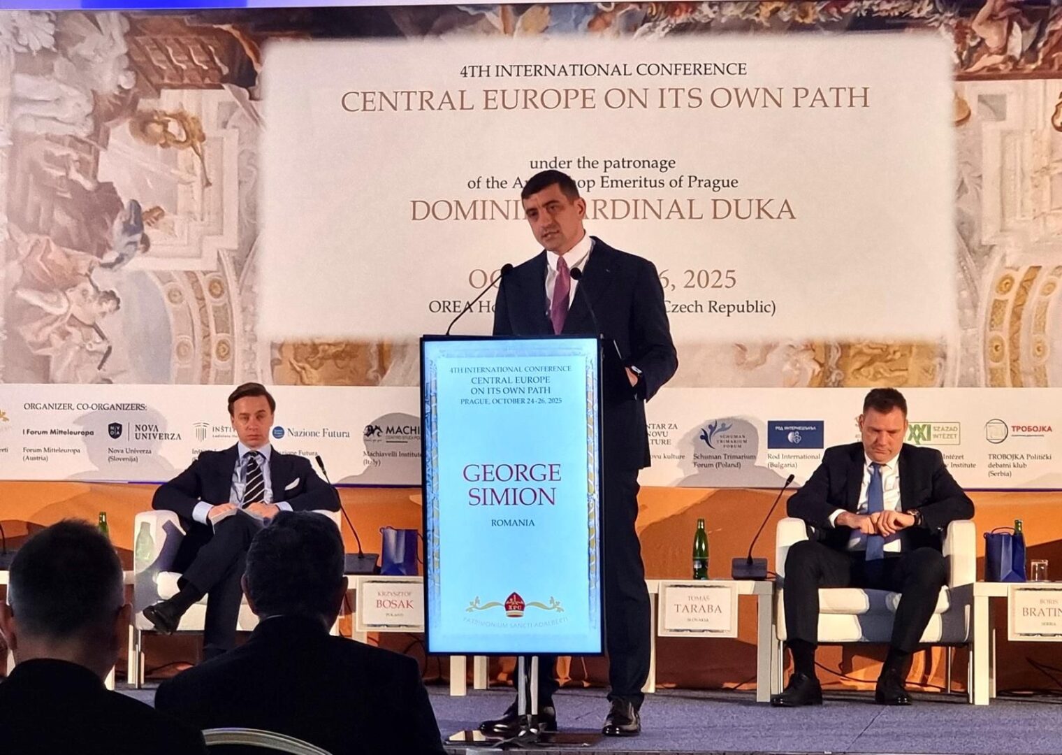 În cadrul conferinței internaționale „Saint Adalbert Award”, desfășurate în capitala Cehiei, președintele AUR, George Simion, a susținut un discurs dedicat renașterii spirituale a Europei Centrale și unității dintre popoarele care își apără credința și libertatea. Liderul suveranist a vorbit despre rolul Bisericii Ortodoxe Române și despre importanța sfințirii Catedralei Mântuirii Neamului.