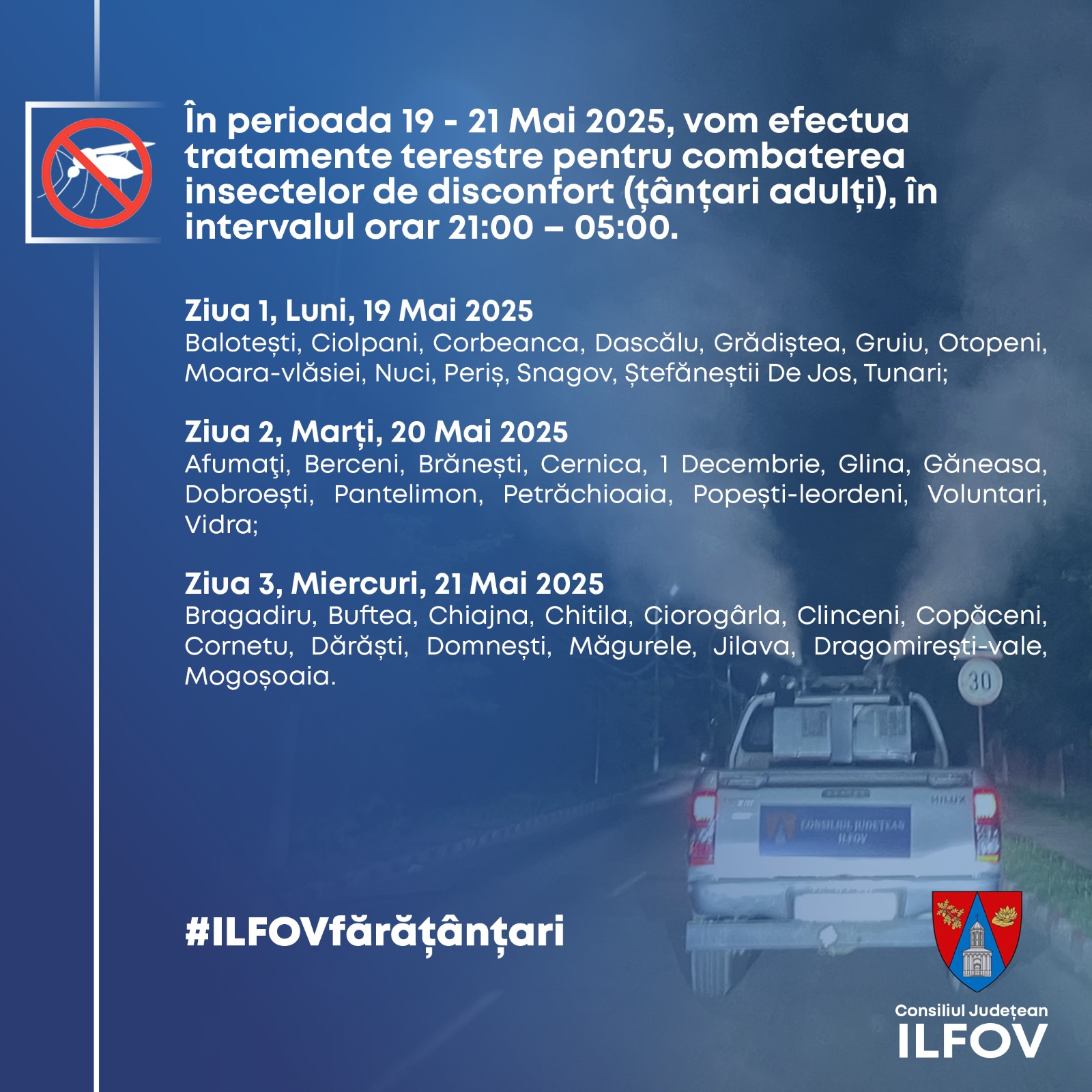 The post Ilfov: Campanie de dezinsecție terestră împotriva țânțarilor, între 19 și 27 mai 2025 appeared first on News Bucuresti.