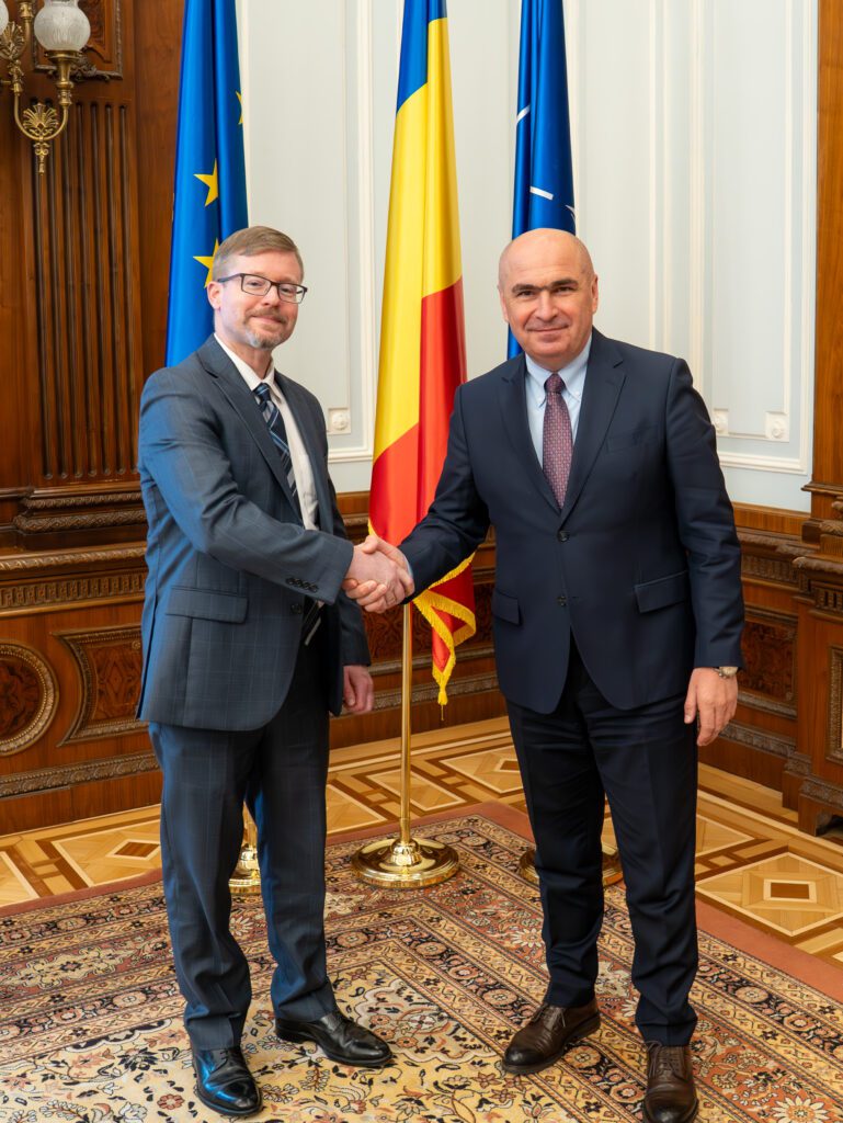 Astăzi, președintele Senatului, Ilie Bolojan, s-a întâlnit cu Michael Dickerson, însărcinat cu afaceri a.i. al Ambasadei Statelor Unite ale Americii la București. Discuția s-a concentrat pe întărirea parteneriatului strategic dintre România și Statele Unite, cu accent pe cooperarea în domeniul apărării și promovarea valorilor democratice împărtășite de cele două țări.