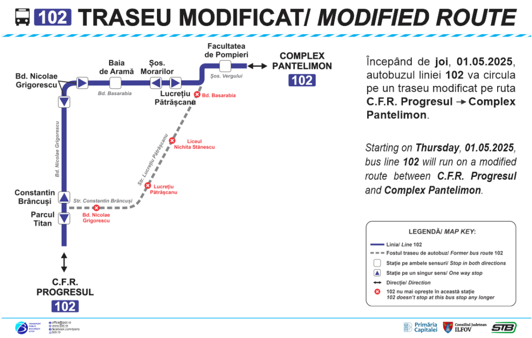 The post Linia 102 va funcționa și pe sensul spre „Complex Pantelimon” pe Bd. Nicolae Grigorescu și Bd. Basarabia, de la 1 mai appeared first on News Bucuresti.