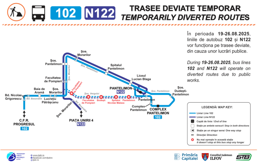 The post Liniile de autobuz 102 şi N122 vor fi deviate timp de o săptămână, din 19 august appeared first on News Bucuresti.