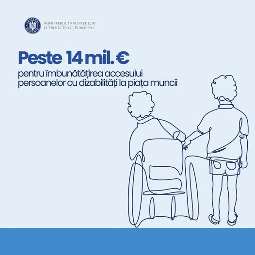 𝐌𝐢𝐧𝐢𝐬𝐭𝐞𝐫𝐮𝐥 𝐈𝐧𝐯𝐞𝐬𝐭𝐢𝐭̦𝐢𝐢𝐥𝐨𝐫 𝐬̦𝐢 𝐏𝐫𝐨𝐢𝐞𝐜𝐭𝐞𝐥𝐨𝐫 𝐄𝐮𝐫𝐨𝐩𝐞𝐧𝐞 𝐚 𝐥𝐚𝐧𝐬𝐚𝐭 𝐮𝐧 𝐧𝐨𝐮 𝐚𝐩𝐞𝐥 𝐝𝐞 𝐩𝐫𝐨𝐢𝐞𝐜𝐭𝐞 𝐢̂𝐧 𝐯𝐚𝐥𝐨𝐚𝐫𝐞 𝐝𝐞 𝐩𝐞𝐬𝐭𝐞 𝟏𝟒 𝐦𝐢𝐥𝐢𝐨𝐚𝐧𝐞 𝐝𝐞 𝐞𝐮𝐫𝐨 𝐩𝐞𝐧𝐭𝐫𝐮 𝐢̂𝐦𝐛𝐮𝐧𝐚̆𝐭𝐚̆𝐭̦𝐢𝐫𝐞𝐚 𝐚𝐜𝐜𝐞𝐬𝐮𝐥𝐮𝐢 𝐩𝐞𝐫𝐬𝐨𝐚𝐧𝐞𝐥𝐨𝐫 𝐜𝐮 𝐝𝐢𝐳𝐚𝐛𝐢𝐥𝐢𝐭𝐚̆𝐭̦𝐢 𝐥𝐚 𝐩𝐢𝐚𝐭̦𝐚 𝐦𝐮𝐧𝐜𝐢𝐢, prin care peste 3500 de persoane cu dizabilități vor beneficia de sprijin pentru a se integra pe piața muncii, a avea o viață activă și autonomă.