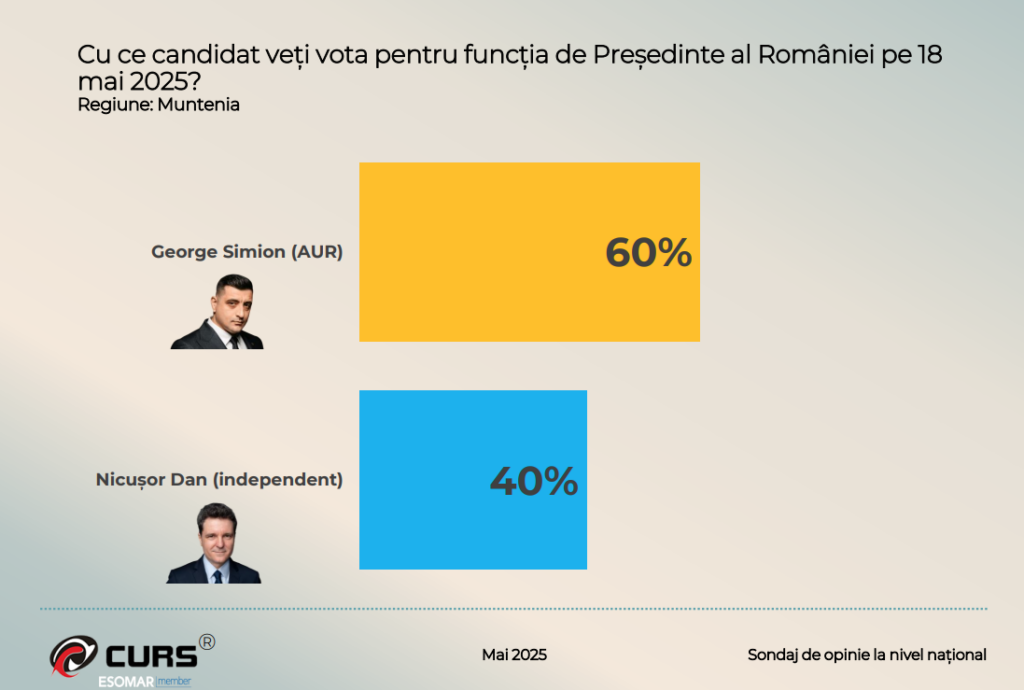 • Muntenia: George Simion – 60%, Nicușor Dan – 40%