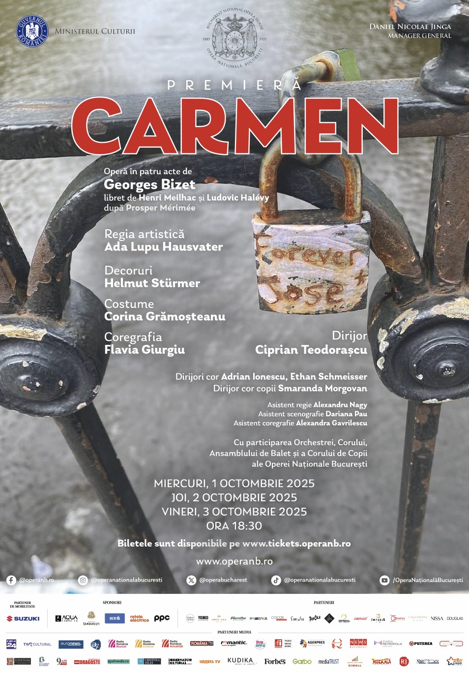 Opera Națională București prezintă în deschiderea stagiunii 2025 – 2026 premiera spectacolului de operă „Carmen” de Georges Bizet, în regia Adei Hausvater. Costumele poartă semnătura Corinei Grămoșteanu, iar decorurile sunt realizate de Helmut Stürmer, conducerea muzicală aparținându-i maestrului Ciprian Teodorașcu. Evenimentul are loc în contextul în care întreaga lume a muzicii lirice celebrează anul acesta […]