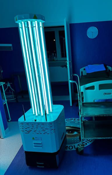 Cei doi roboți autonomi de dezinfecție UV-C, achiziționați recent de Consiliul Județean Gorj, sunt deja funcționali în saloanele și secțiile spitalului. O investiție de 200.000 de euro (100.000 euro fiecare robot) care asigură un nivel ridicat de igienă și protecție împotriva infecțiilor nosocomiale.