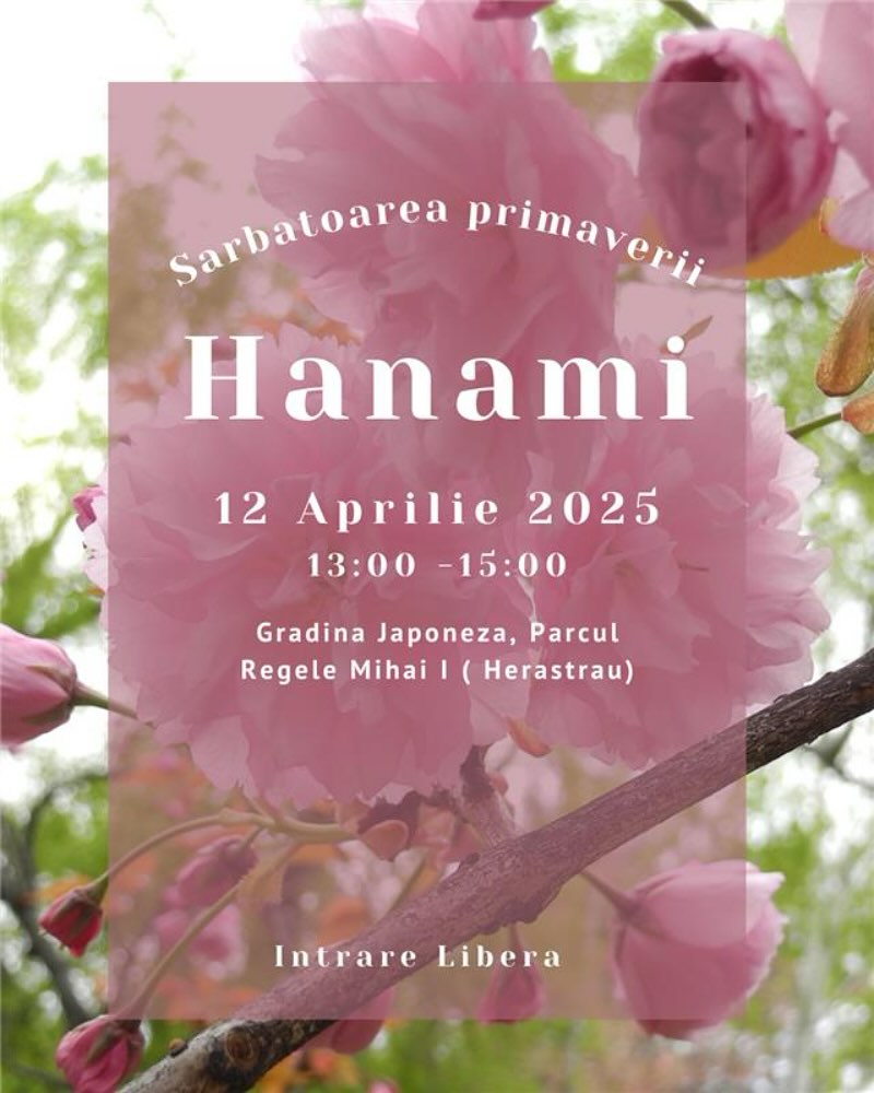 Sâmbătă, între orele 13:00 și 15:00, în Grădina Japoneză din incinta Parcului Regele Mihai I (fost Herăstrău), va avea loc sărbătoarea florilor de cireș – Hanami. În cadrul evenimentului se vor derula mai multe ateliere precum ceremonia ceaiului, origami, caligrafie, yukata și experimentarea culturii japoneze sub diverse forme. Din program nu vor lipsi tobele japoneze, […]
