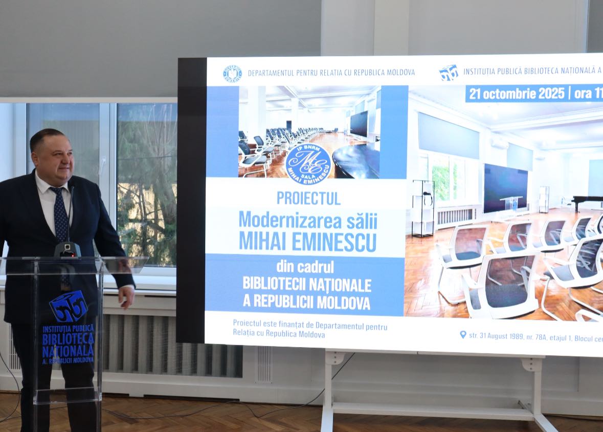 Un nou spațiu pentru cultura românească prinde viață la Chișinău, cu sprijinul DRRM Sala „Mihai Eminescu” din cadrul Bibliotecii Naționale a Republicii Moldova a fost inaugurată oficial, astăzi, un spațiu modern, multifuncțional, dedicat valorilor culturale românești.