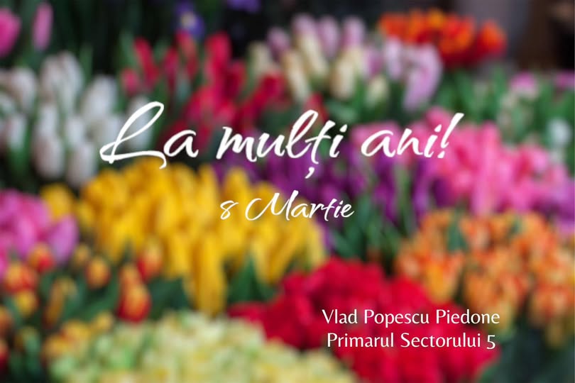 Vlad Popescu Piedone, primarul Sectorului 5, transmite sâmbătă, pentru toate doamnele și domnișoarele din Sectorul 5, LA MULȚI ANI!